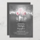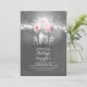 chalkboard bridal shower invitation features string lights hanging on the tree branch and cute little mason jars with pink roses and baby's breath blossoms. The hand painted mason jar in the centre has a cute love heart and couple's initials on it. Other mason jars holds only white baby's breaths. Perfect invite for for rustic country bridal shower with grey and pink colour scheme. Cute and whimsical invitation for outdoor bridal shower with twinkle lights, fireflies and floral mason jars.