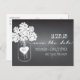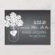 A pretty mason jar full of white hydrangeas decorates this lovely wedding Save the Date chalkboard postcard.