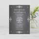 Popular chalkboard style wedding invitation is outlined by swirl scroll border and given a chalk effect. On the back, an original illustration of a trendy mason jar holding white hydrangea flowers and a heart personalised with the bride and groom's initials. Whimsical typography gives the invitation a casually elegant look. Coordinating items also available.