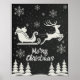 Celebrate the holiday season with this charming chalkboard-style Merry Christmas poster. Featuring a delightful reindeer pulling Santa’s sleigh through a snowy night, this vintage-inspired design brings a rustic, festive feel to any space. Snowflakes and Christmas trees add to the wintery scene, perfect for holiday decor, offices, classrooms, or gifting. The black chalkboard background provides a striking contrast to the white illustrations, giving this poster a timeless, classic look.