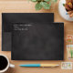 Celebrate nuptials on the shore with this breezy palm tree with a sketched on chalkboard blackboard with white chalk look. Great for a rustic vintage feel at a beach wedding. Design Copyright © CustomInvitesOnline.com