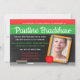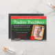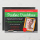 This fun teacher retirement party invitation features a blackboard in the background and pencil frame where you can insert a photo of the retiree! The colours are black, red and green and there is an apple.