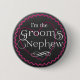 Wedding party pinback button with dark charcoal grey chalkboard background, bright pink zigzag pattern and heart with elegant script lettering in white. Groom's nephew button is the perfect way to make your family feel special. Matching pins are available for all of your family and friends who will be celebrating your wedding day with you. If you have any special design needs, just contact me and I'll make it for you at no additional cost.
