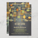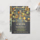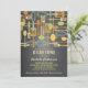 Retro style implements for cooking and eating are featured on this lovely invitation to a "stock the kitchen" Bridal Shower for the bride-to-be. The colour scheme is fun and neutral with forks, spoons, knives, spatulas and whisks in shades of umber, gold, brown and sage green, set against a trendy chalkboard black background.