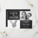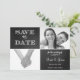 Vintage chalkboard 5x7 save the date cards with your choice of adding 1 or 2 photos. Leave the bottom photo as is, if you wish. Trendy chalk board background with chalk style typography. Easy to use template - just enter the names of the Bride & Groom, along with the wedding date in the space provided. Get the matching Chalkboard Save the Date stamps below: