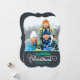 Simple chic modern Christmas holiday photo card design features elegant calligraphy script typography on a faux chalkboard texture background. Personalise the design with your custom family photo and name. Click the "Customise It" button to add more text and photos on the back and create your own unique one of a kind design!