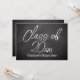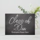 Slate grey chalkboard with erased effect, and white swirly text with "class of (your year)", great for the graduate to announce the big achievement. Reminiscent of the classroom blackboard with a touch of class and elegant style.