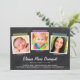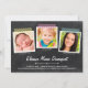 This unique, modern 3-photo graduation announcement features a chalkboard-style background, washi tape, and space for three square photos. Short captions can accompany each photo in this multi photo template. Graduation party details can be added to the template on the back of the card, which also features a chalkboard background. (Design tip: make sure your photos are square before uploading)