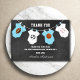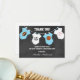 Lovely thank you note cards for a sports theme baby shower. Chalkboard background with hanging baby clothes with football, soccer, basketball and baseball. Blue turquoise and white colours. BACK OF CARD is WHITE - so you can add an additional handwritten personal note! Get matching items in collection "SPORTS THEME BABY SHOWER"