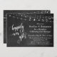 This sophisticated but rustic wedding reception card features a textured chalkboard background image overlaid depicting strings of white twinkling light strings. I've used an elegant, swirling script font to render graphics depicting the words "happily ever after"; on the back I've placed the word "love". Your own text is easily added for customising this template as little or much as you wish. Use the template fields to simply enter your personal details, and click to customise further if you'd like to re-position any of the unlocked layers. There is a faint, opaque black overlay above the blackboard layer; remove it if you'd rather a lighter chalkboard background. Please do not hesitate to reach out to me for special requests or for assistance with customisation.