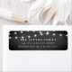 Elegant and luminous return address labels feature a rustic chalkboard background with white lettering and strings of glowing white fairy lights.