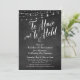 This sophisticated but rustic wedding reception card features a textured chalkboard background image overlaid with a graphic depicting strings of white twinkling light strings. I've used an elegant, swirling script font to render graphics depicting the words "To Have and to Hold"; on the back I've placed the word "love". Your own text is easily added for customising this template as little or much as you wish. Use the template fields to simply enter your personal details, and click to customise further if you'd like to re-position any of the unlocked layers. There is a faint, opaque black overlay above the blackboard layer; remove it if you'd rather a lighter chalkboard background. Please do not hesitate to reach out to me for special requests or for assistance with customisation.
