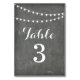 Cute, trendy chalkboard summer string light wedding table numbers. These table numbers work well for rustic weddings! Check out the matching wedding invitations, save the dates, thank you cards and more! To change the font style and colour, click on the "Customise It" button below the product image for more personalisation options.