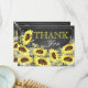 Sunflowers on chalkboard-look background rustic modern thank you card.