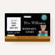 A cute horizontal photo ID badge designed for elementary school with a faux chalkboard , a little bear and some books . Besides the usual customisation like name of the teacher , title , school name and the year the badge is valid for , this one also let you add your school district badge .