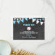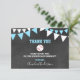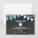 Lovely thank you note cards for a sports letters BASEBALL baby shower party for boy. Chalkboard background with hanging bunt flags. Blue turquoise and white colours. BACK OF CARD is white - so you can add an additional handwritten personal note / message!