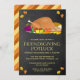 Invite your guests with this elegant Thanksgiving potluck party invitation featuring simple typography and a beautiful turkey meal against a chalkboard background. Simply add your event details on this easy-to-use template to make it a one-of-a-kind invitation. Flip the card over to reveal an elegant orange stripes pattern on the back of the card.