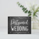 In this pretty design I've used a pair of compatible fonts to create a graphic that reads "Postponed Wedding", centred and bold. This graphic was flanked by elaborate borders. Template fields are available for your own personal details; change wording as you need and see fit. All layers were added separately and left unlocked to give you maximum design control.