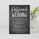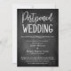 In this pretty design I've used a pair of compatible fonts to create a graphic that reads "Postponed Wedding", centred and bold at the top. An elaborate border appears next, separating this heading from the body. Below the border are the template fields you will use to add your own unique details. On both sides, the background was covered with an image depicting a textured chalkboard. All layers were added separately and left unlocked to give you maximum design control.