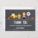 This boy's chalkboard under construction birthday thank you flat card features a cute excavator, witches hats, construction worker and sign. The design also includes some dividers and a white line border on a scanned chalkboard background. I love creating chalkboard invitations and this theme is both popular and fun to design for. I have a new series of chalkboard construction invitations available at the store for under 5 year old boys. This boys chalkboard under construction thank you flat card is ready to be personalised and is ideal for someone who had an under construction construction birthday party. If your little boy is not 1 year old please check that the number has changed at the back of the card.