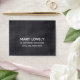 Simple, rustic chalkboard self-addressed custom RSVP envelope has personalised name in simple, white lettering. Vintage chalkboard look background. Custom envelopes for any special occasion or event, including rustic wedding, country theme party, teacher retirement, etc.