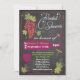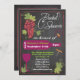 Cool and modern Chalkboard Wine Bridal Shower Invitations with a great illustration of red grapes, cork screw, wine bottle, wine glass and grape leaves all on a chalkboard background. Easy to edit with your party information. Need help, just contact me! Hand drawn illustration by McBooboo.