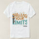 The t-shirt design features the phrase "Challenge Your Limits" in bold, multi-coloured letters, set against a vibrant, abstract background. The colours are bright and eye-catching, reflecting the energetic and inspirational message of the phrase. The abstract background adds a dynamic and visually interesting element to the design, making it stand out from the crowd.