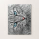 Challenging Grey Tabby Cat with Blue Eyes Jigsaw Puzzle