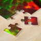 Challenge your jigsaw skills with this shiny lime green, red and yellow holographic puzzle. The photo is courtesy of Eric Leiser and is made available under a Creative Commons 3.0 license. The photo has been modified for contrast, color enhancement, size and shape.