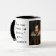 Coffee mug/cup with quote from William Shakespeare's "Twelfth Night": "There is no darkness but ignorance." White with black interior and handle and a the Cobbe portrait, said to be a painting of a young Shakespeare.