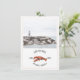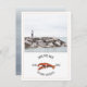 A rustic nautical wedding save the date featuring an illustration of a red lobster with custom photo on front. Back is chambray colour watercolor inspired design.