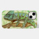 A tiny watercolor portrait of a colourful, exotic Chameleon adorns this fun phone case!