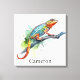 watercolor painting of a chameleon in all colours of the rainbow sitting on a branch