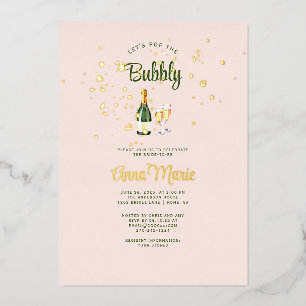 Gold Champagne Bubbles Engagement Party Detail Invitation