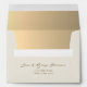 Add a refined touch to your wedding suite with this elegant 5x7 champagne envelope, blending rustic charm with modern sophistication. Featuring a custom botanical gold monogram on the top flap, stylish calligraphy script, and a personalised return address, this envelope is the perfect complement to your wedding invitations. Ideal for romantic, rustic, or classic celebrations.