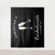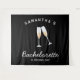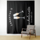 personalised retro bachelorette party tapestry in black and white with champagne glasses is perfect as a bachelorette party photo backdrop. Celebrate your bridal shower in style with the perfect champagne party theme in black and white, the perfect theme for the nostalgic vintage 70s bride and her bridesmaids.