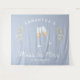 Miss to Mrs personalised retro bachelorette party tapestry in duck egg blue and white with champagne glasses is perfect as a bachelorette party photo backdrop. Celebrate your bridal shower in style with the perfect champagne party theme in duck egg blue and white, the perfect theme for the nostalgic vintage 70s bride and her bridesmaids.