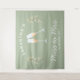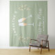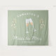 Miss to Mrs personalised retro bachelorette party tapestry in sage green and white with champagne glasses is perfect as a bachelorette party photo backdrop. Celebrate your bridal shower in style with the perfect champagne party theme in sage green and white, the perfect theme for the nostalgic vintage 70s bride and her bridesmaids.