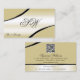 Champagne Beige Curved Lines Monogram and QR Code Business Card