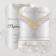 Sweet Sixteen Birthday showcases a beautiful Amethyst Draped Necklace in gold on a silver champagne bokeh back drop both front and back, details on back of card. NOTE: This invitation looks best on semi gloss or the shimmer papers to allow the sparkle to shine. There are no real pearls, glitter, diamonds,jewels,ribbons or bows on this card, these are artistically created designs made to appear real