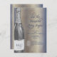 Get ready to celebrate a wedding! Pop the cork and pour the champagne at your wedding reception party celebration! Vintage champagne bottle. Fun script typography and space to include information about your reception location and wedding reception time line. Vintage looking with black, white and blue colours. Gold colour is in the background to add texture and effects.