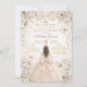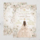 Celebrate her special day with this elegant Quinceañera invitation featuring romantic watercolor roses, a delicate gold crown, and a beautiful princess gown illustration.