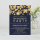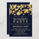 This modern stylish design features a gold bokeh dot design with a navy blue background. While this particular invite is made for bachelorette parties, it's also great for Engagement, Birthday and New Year's Eve parties. Personalise this invitation with the details of your party. The back also has plenty of room for information.