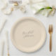 Paper plates for your bridal shower that features grey, stylised script on a trendy, champagne colour that complements the bridesmaid wedding colour scheme. Select your paper plate style and size.