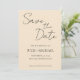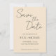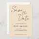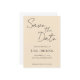 Simple style wedding save-the-date invitations that feature black, stylised script on a trendy, champagne colour background. Edit and replace names, date, and location with your own. Select your invitation size and paper style.