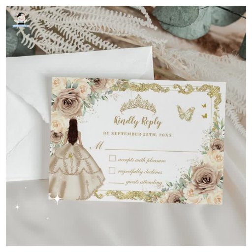 Champagne Cream Floral Sweet 16 Quinceañera Photo Invitation