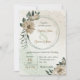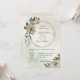 Unique wedding invitation featuring romantic champagne flowers and green leaves.