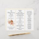 Tri-fold wedding program featuring champagne-coloured themed flowers, roses in chocolate brown and dusty pink, accentuated with faux gold embossed foliage. Please Note: The gold embossed details in this wedding program is an imitation, not gold foil, and also, changing the paper type may make the program difficult to fold.