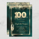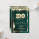 Champagne Glass Gold Confetti Green 100th Birthday Invitation