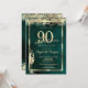 Champagne Glass Gold Confetti Green 90th Birthday Invitation